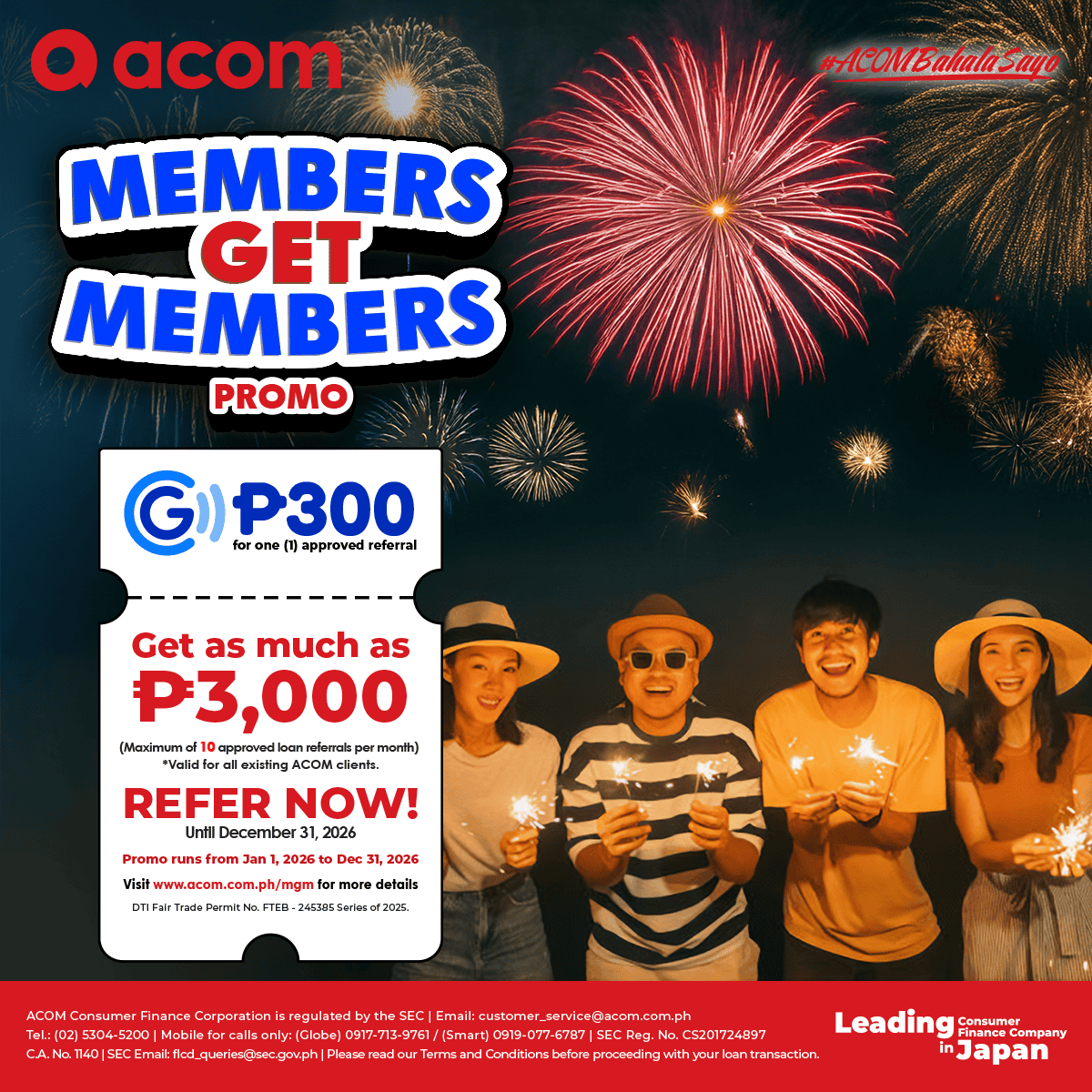 Current members (“Referrers”) are defined as existing clients of ACOM Consumer Finance Corporation. - Referrers are entitled to receive a PHP 300 worth of the e-voucher of GCash reward.