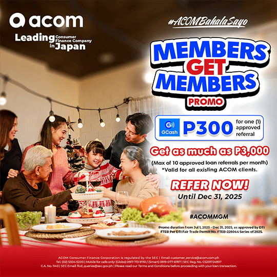 Current members (“Referrers”) are defined as existing clients of ACOM Consumer Finance Corporation. - Referrers are entitled to receive a PHP 300 worth of the e-voucher of GCash reward.